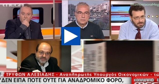 Μετά τα μπρος πίσω του υπουργείου Οικονομικών για θέματα φορολογίας, τελών κυκλοφορίας και αποδείξεων, ο αναπληρωτής υπουργός Τρύφων Αλεξιάδης αφού πήρε πίσω αυτά που είχε πει ο ίδιος, αλλά και αυτά που είχαν διαρρεύσει από το ΥΠΟΙΚ, επιτέθηκε κατά του δημοσιογράφου του Mega Γιώργου Παππού.