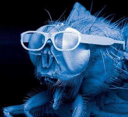 Όσοι έχουμε κατοικίδια έχουμε μπει συχνά στον πειρασμό να βάλουμε μια φωτογραφία τους στο Photoshop και να τους προσθέσουμε ό,τι αξεσουάρ βάζει ο νους μας: από στέμματα και φιόγκους μέχρι καπέλα και γυαλιά. Αν πιστεύετε ότι κάτι τέτοιο έγινε και με τη συγκεκριμένη φωτογραφία, γελιέστε. Η κατασκευαστική εταιρεία Micreon GmbH έστειλε τη φωτογραφία της μύγας με τα γυαλιά σε έναν επιστημονικό διαγωνισμό φωτογραφιών το 2005 στη Γερμανία. Στόχος να προβληθεί μια νέα τεχνική της εταιρείας που αφορούσε τη λεπτομερή κατασκευή μικροσκοπικών αντικειμένων, σε πολύ μικρή κλίμακα, με τη μέθοδο του λέιζερ. Το έντομο ήταν νεκρό την ώρα της φωτογράφισης.