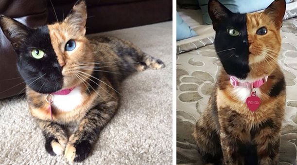 Η Venus είναι μια ξεχωριστή γάτα. Το κεφάλι της είναι δίχρωμο: μισό καφέ και μισό μαύρο. Αλλά η ιδιαιτερότητά της δεν σταματάει εδώ. Η Venus έχει ένα μάτι γαλάζιο και ένα πράσινο και μοιάζει σαν δημιούργημα της ψηφιακής τεχνολογίας. Δεν είναι όμως. Είναι αποτέλεσμα δύο εμβρύων που συγχωνεύτηκαν στα πρώιμα στάδια της ανάπτυξής του με το τελικό αποτέλεσμα να παρουσιάζει χρωμοσωματικές ανωμαλίες. Το συμπαθές και ιδιαίτερο τετράποδο έχει γίνει η βασίλισσα του ίντερνετ.