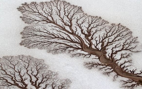Μοιάζει με πίνακα ζωγραφικής ή ακόμα και με το δημιούργημα κάποιου με πολύ φαντασία στο Photoshop. Δεν είναι όμως, είναι απλά ένας ωραίας πίνακας της φύσης στο Μεξικό. Την εναέρια φωτογραφία τράβηξε ο Adrian Franco και επιλέχθηκε στις 9 Απριλίου του 2012 ως η «Φωτογραφία της μέρας» από το National Geographic. Σε αυτή μπορούμε να δούμε τα απίστευτα μοτίβα που έχει δημιουργήσει η αποξηραμένη κοίτη του ποταμού στην καλιφορνέζικη έρημο Baja του Μεξικό!
