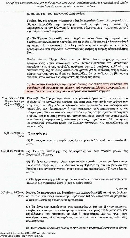 Ο Νόμος αναφέρεται ρητά σε προγράμματα ή εκπομπές και όχι δελτία ειδήσεων. Σταδιακά όμως, αυτή η πρόνοια του Νόμου επεκτάθηκε αυθαίρετα και στην ειδησεογραφία με τις μόνιμες κομματικές ανακοινώσεις ή ασήμαντες δηλώσεις, να παρουσιάζονται ως ειδήσεις, προς δόξαν μιας τριτοκοσμικής νοοτροπίας!