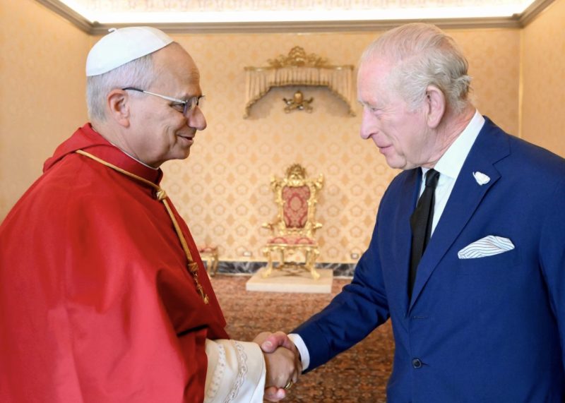 Λίγα λεπτά νωρίτερα, ο 76χρονος μονάρχης, ο οποίος είναι και ο Ύπατος Κυβερνήτης της Εκκλησίας της Αγγλίας, έγινε δεκτός σε ιδιωτική ακρόαση από τον Αμερικανό πάπα, στην πρώτη τους συνάντηση από τότε που ο Λέων ΙΔ΄ διαδέχθηκε τον Φραγκίσκο ως επικεφαλής της Καθολικής Εκκλησίας τον Μάιο.
