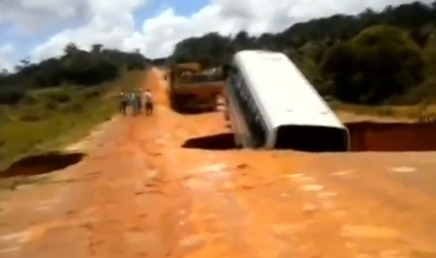 Επιβάτες ενός λεωφορείου στη βόρεια Βραζιλία, φαίνεται ότι είχαν “τύχη βουνό” αφού κατάφεραν να βγουν έγκαιρα από αυτό, όταν ο δρόμος υποχώρησε και ένας κρατήρας, που υπήρχε κάτω από αυτόν, το “κατάπιε”.