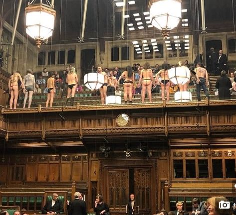 Μια ομάδα ημίγυμνων διαδηλωτών κατά της κλιματικής αλλαγής προκάλεσε αναστάτωση στο βρετανικό κοινοβούλιο, καθώς επιδείκνυαν τα γυμνά τους κορμιά, την ώρα που οι βουλευτές προσπαθούσαν, μάταια, να επικεντρωθούν στη συζήτηση που βρισκόταν εκείνη την ώρα σε εξέλιξη για το Brexit.