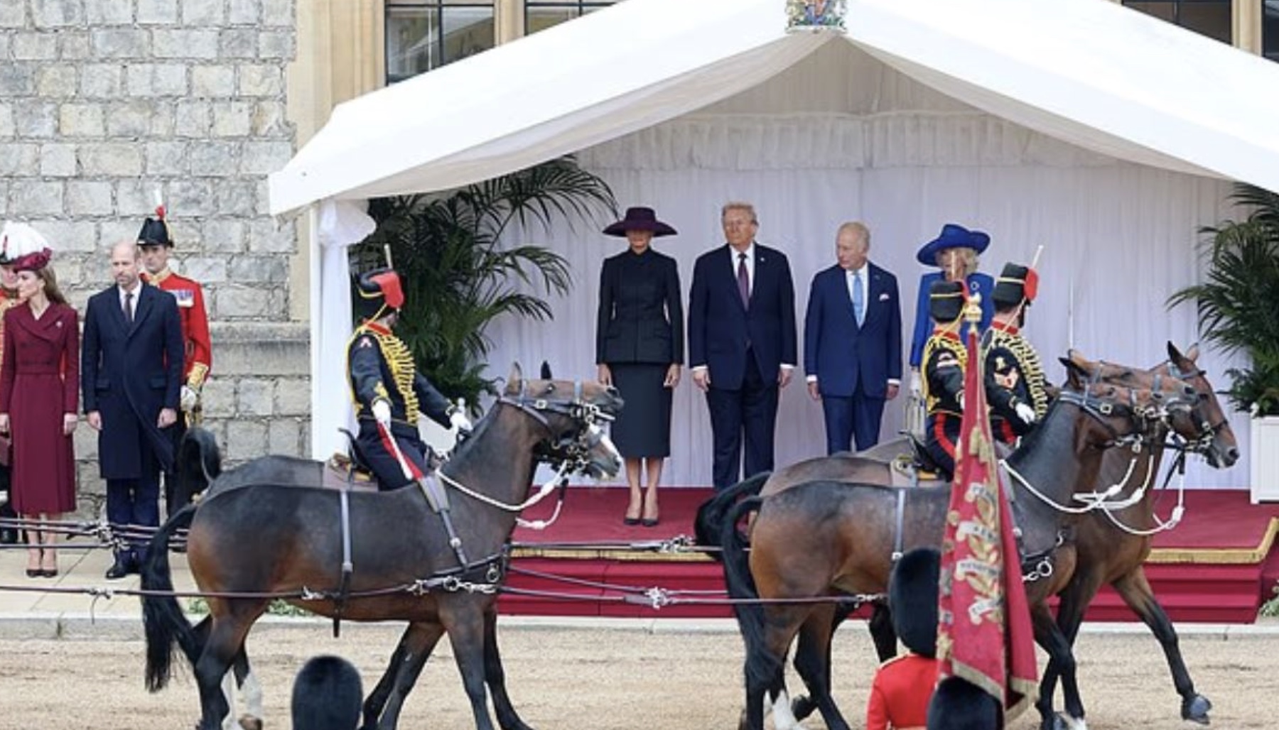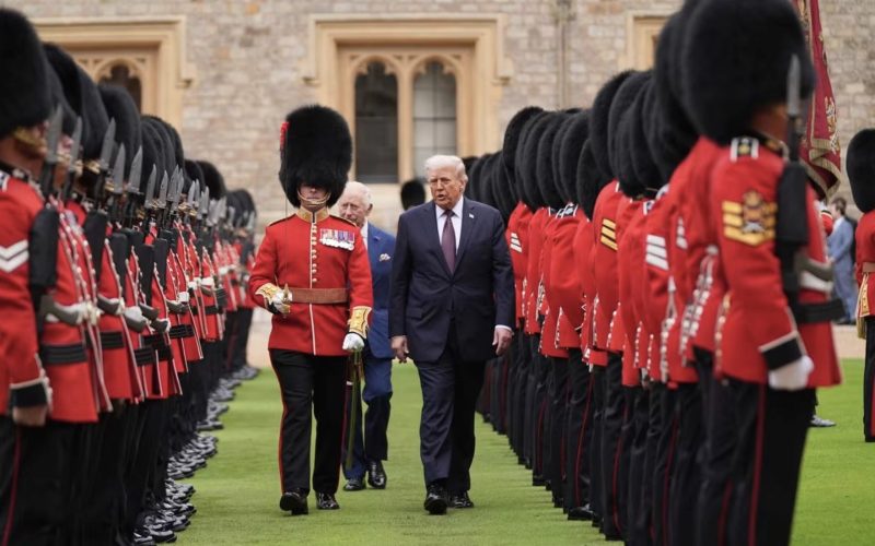 Η τελετή συμπεριλάμβανε μεταξύ άλλων πομπή με άμαξες και έφιππους στρατιωτικούς από το Σύνταγμα Έφιππης Φρουράς η οποία πλαισιωνόταν από μέλη των Ενόπλων Δυνάμεων και των τριών σωμάτων. Του Βασιλικού Ναυτικού, της Αεροπορίας ( RAF) και του Στρατού. Λίγο αργότερα ο πρόεδρος Τραμπ επιθεώρησε την Τιμητική Φρουρά αφού πρώτα ακούστηκαν οι εθνικοί ύμνοι και των δύο χωρών.