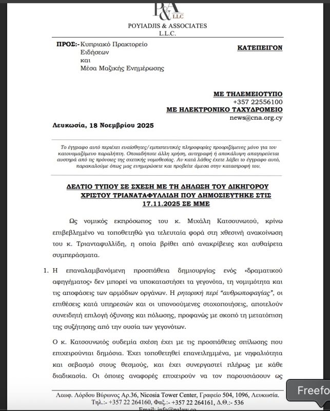 Ως νομικός εκπρόσωπος του κ. Μιχάλη Κατσουνωτού, κρίνω επιβεβλημένο να τοποθετηθώ για τελευταία φορά στη χθεσινή ανακοίνωση του κ. Τριανταφυλλίδη, η οποία βρίθει από ανακρίβειες και αυθαίρετα συμπεράσματα.