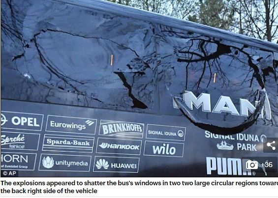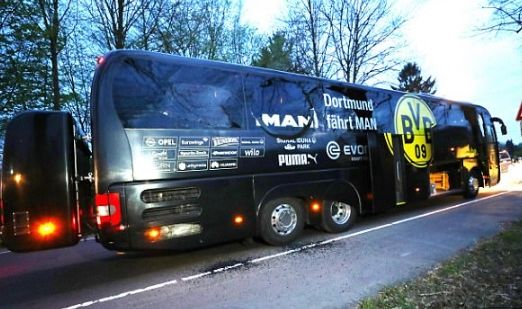 Συγκεκριμένα, το υπερσύγχρονο λεωφορείο της Ντόρτμουντ είναι εξοπλισμένο με τριπλά τζάμια, τα οποία ναι μεν έσπασαν τα περισσότερα εξ αυτών σε κομμάτια, αλλά πρώτον γλίτωσαν τους επιβαίνοντες από τα χειρότερα και παράλληλα δεν τραυμάτισαν κανέναν σοβαρά, πλην του Μαρκ Μπάρτρα που έχει έναν τραυματισμό στο χέρι. Ο
