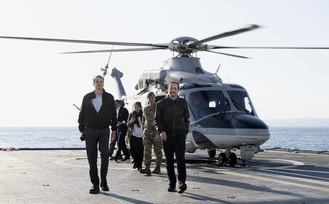 Ο πρωθυπουργός Κυριάκος Μητσοτάκης και ο Πρόεδρος της Κυπριακής Δημοκρατίας Νίκος Χριστοδουλίδης επισκέφτηκαν τη φρεγάτα «Κίμων» του πολεμικού ναυτικού, που μαζί με τη φρεγάτα «Ψαρά» και τέσσερα μαχητικά F-16 Viper έχουν σταλεί στην Κύπρο στο πλαίσιο της αμυντικής συνδρομής που της παρέχει η Ελλάδα.