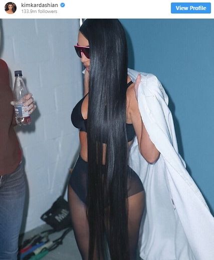 Η Κιμ πόζαρε στους φωτογράφους, φορώντας ένα μπουστάκι και το διαφανές καλσόν της και με τα ολόσια μαλλιά της να φτάνουν ως τους …αστραγάλους. Τις φωτογραφίες ανέβασε στο Instagram, προκαλώντας, βεβαίως, άπειρα σχόλια.