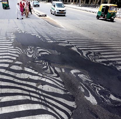 Οι εικόνες που δείχνουν την άσφαλτο σε δρόμους στο Νέο Δελχί να λιώνει, προκαλούν πραγματικά σοκ.Περισσότεροι από 1.300 άνθρωποι έχουν πεθάνει τις τελευταίες ημέρες στην Ινδία λόγω του κύματος καύσωνα που πλήττει τη χώρα. Οι αρχές προειδοποιούν να μη βγαίνει κανείς έξω το μεσημέρι.