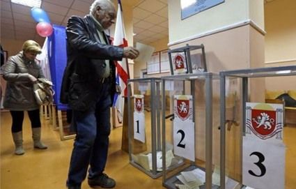 «Απόψε θα γιορτάσουμε» πρόσθεσε ο πρωθυπουργός που εμφανίστηκε βέβαιος για τη νίκη του «ναι» στην ανεξαρτητοποίηση της Κριμαίας και την ένταξή της στη Ρωσία.