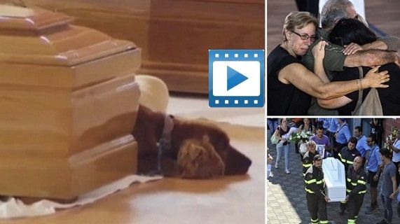 Τριάντα τέσσερα φέρετρα κείτονται, το ένα δίπλα στο άλλο, στο εσωτερικό ενός γυμναστηρίου στο Ασκόλι Πιτσένο της Ιταλίας και δίπλα σε ένα από αυτά στέκεται ακούραστος φρουρός ένα μικρόσωμο σκυλάκι, αφοσιωμένο μέχρι τέλους στον ιδιοκτήτη του.