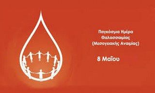 Ημέρα μνήμης, αναγνώρισης, σεβασμού, ενημέρωσης, ευαισθητοποίησης, δέσμευσης και περιφρούρησης είναι η σημερινή Παγκόσμια Ημέρα Θαλασσαιμίας.