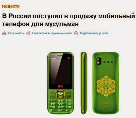 Η πρόεδρος της ένωσης   μουσουλμάνωνΡωσίας δήλωσε ότι στο κινητό συμπεριλαμβάνεται το Κοράνι στα ρωσικά και στα αραβικά  και  περιέχει πυξίδα για τον προσανατολισμό προς τη Μέκκα για την καθιερωμένη προσευχή.