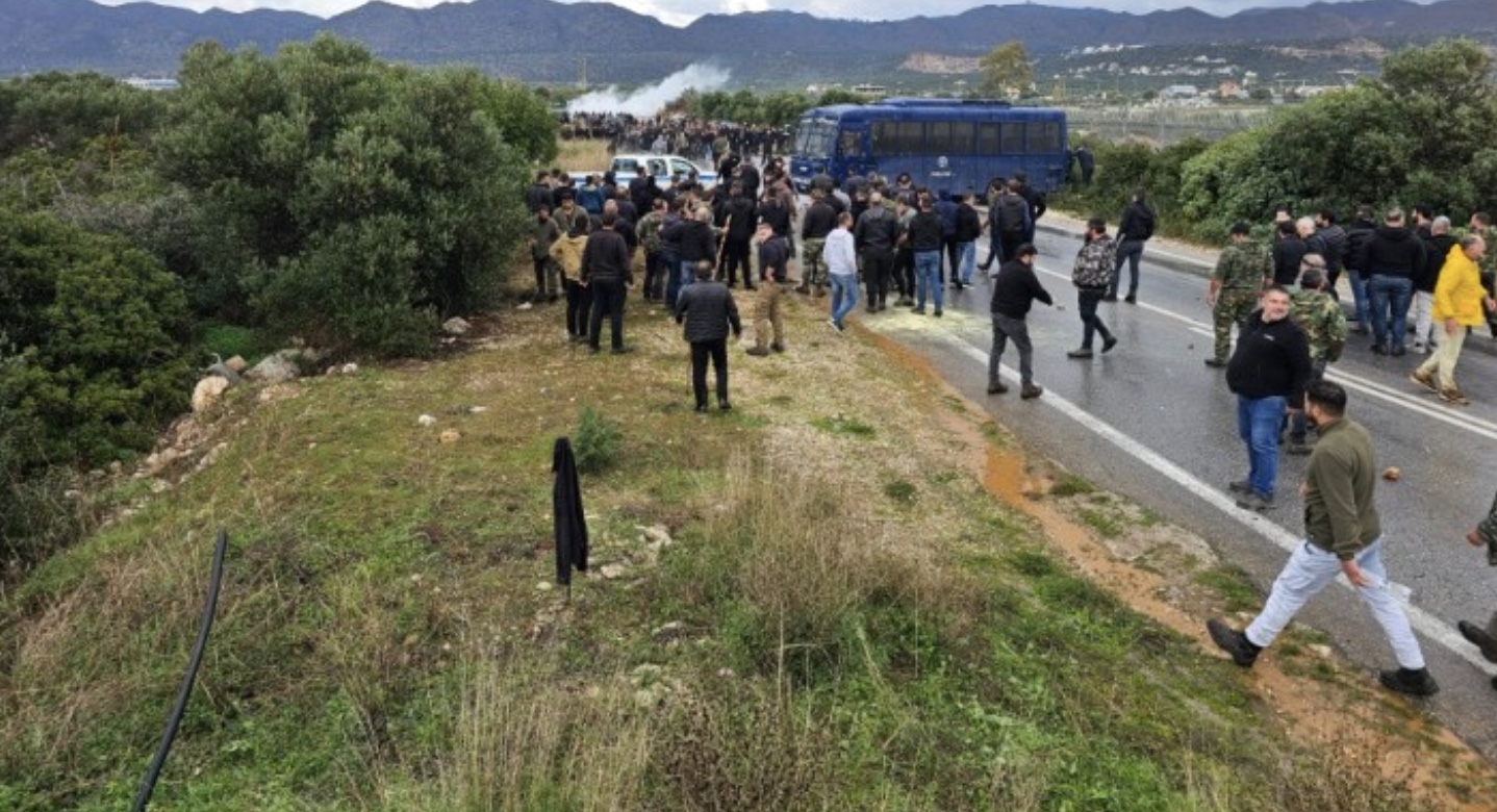 Μετά τα επεισόδια στον οδικό άξονα που οδηγεί στο αεροδρόμιο, τον πετροπόλεμο, τα χημικά, τις κρότου λάμψεις και καπνογόνα, αγρότες και κτηνοτρόφοι κατάφεραν να σπάσουν τον αστυνομικό κλοιό να φτάσουν στην κεντρική πύλη όπου και τοποθέτησαν κάδους απορριμμάτων και τα σώματα τους, όπως είπαν, «ως ασπίδα για τον αγώνα επιβίωσης» που δίνουν.