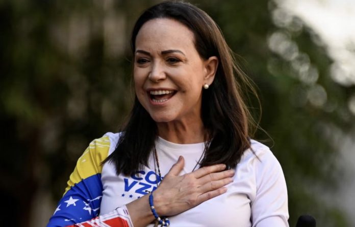 Η 58χρονη Ματσάδο που ζει στην παρανομία μετά τις προεδρικές εκλογές του Ιουλίου του 2024 τις οποίες η αντιπολίτευση δηλώνει ότι κέρδισε, κατηγορώντας τον πρόεδρο Νικολάς Μαδούρο που βρίσκεται στην εξουσία από το 2013 για νοθεία.