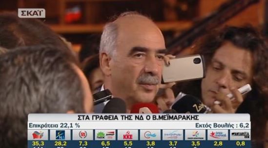 Ο πρόεδρος της ΝΔ Ευάγγελος Μεϊμαράκης μετά την ανακοίνωση των πρώτων αποτελεσμάτων στις εκλογές, δήλωσε, “Τον συγχαίρω τον Αλέξη Τσίπρα και τον καλώ να σχηματίσει την κυβέρνηση που πρέπει” .