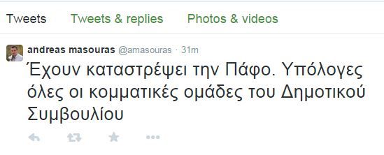 Συγκεκριμένα έγραψε: «Έχουν καταστρέψει την Πάφο. Υπόλογες όλες οι κομματικές ομάδες του Δημοτικού Συμβουλίου».