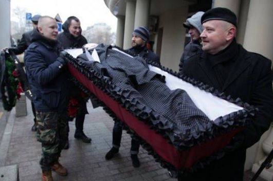 Στελέχη ενός εθνικιστικού κόμματος άφησαν σήμερα ένα φέρετρο, στο εσωτερικό του οποίου είχαν τοποθετήσει μια κούκλα- ομοίωμα του πρόεδρου της Τουρκίας Ρετζέπ Ταγίπ Ερντογάν σε σημείο κοντά στην πρεσβεία της Τουρκίας στη Μόσχα.