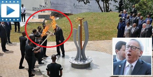 Όπως αναφέρει ο Independent, ο πρόεδρος της Κομισιόν την ώρα που άναβε την τεράστια δάδα της «Φλόγας της Ελπίδας», γύρισε επικίνδυνα προς την Jeannette Kagame, η οποία οπισθοχώρησε έντρομη.