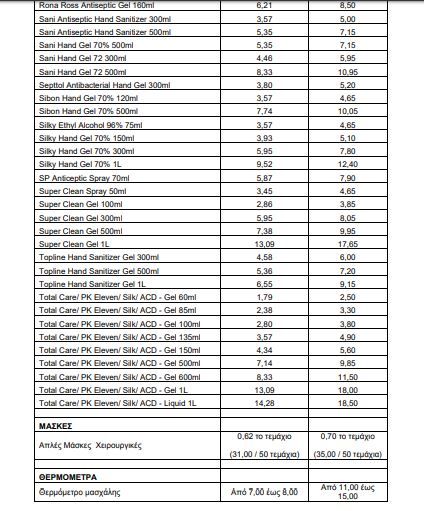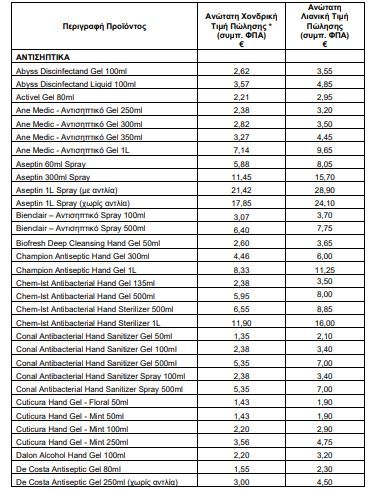 Οι ανώτατες χονδρικές τιμές πώλησης αναφέρονται σε παραγωγούς, εισαγωγείς και
