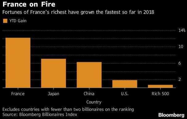 Οι δύο πλουσιότεροι άνθρωποι της Γαλλίας – οι κολοσσοί της πολυτέλειας Bernard Arnault και Francois Pinault – πρόσθεσαν 22,3 δισεκατομμύρια δολάρια στις περιουσίες τους φέτος, βοηθώντας τη χώρα τους να γίνει εξαιρετικά φιλόξενη για τη δημιουργία πλούτου μεταξύ δισεκατομμυριούχων.