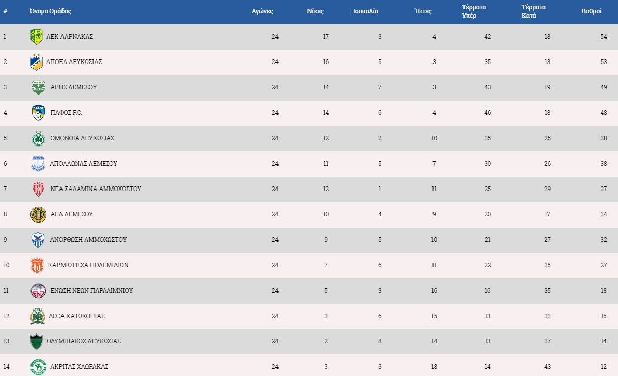 Το πρόγραμμα της 24ης αγωνιστικής του Πρωταθλήματος Cyta: