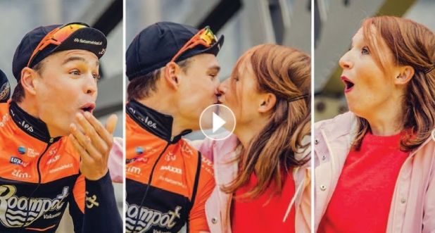 Η 34χρονη Βελγίδα δημοσιογράφος Linde Merckpoel έπαιρνε συνέντευξη από τον 29χρονο ποδηλάτη Stijn Steels. Μόλις η συνέντευξη τελείωσε, η δημοσιογράφος θέλησε να δώσει μία αγκαλιά και ένα φιλί στο μάγουλο του ποδηλάτη.