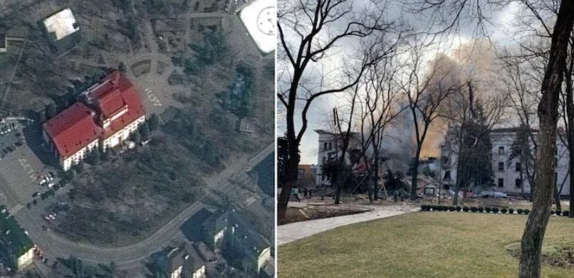 Η αμερικανική εταιρεία Maxar Technologies, ειδικευμένη στις δορυφορικές εικόνες, έδωσε χθες στη δημοσιότητα φωτογραφία του Δραματικού Θεάτρου που τραβήχτηκε τη Δευτέρα, κατ’ αυτήν. Στο στιγμιότυπο αυτό, διακρίνεται η λέξη «παιδιά» γραμμένη στο έδαφος με τεράστια λευκά γράμματα στη ρωσική γλώσσα, μπροστά και πίσω από το κτίριο.
