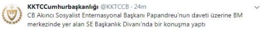 Την πρόσκληση και την συμμετοχή του στην εκδήλωση δημοσιοποίησε ο ίδιος ο κ. Ακιντζι με tweet από τον λογαριασμό της παράνομης «Προεδρίας της Τουρκικής Δημοκρατιας Βορείας Κυπρου» κάνοντας ειδική αναφορά στην προσωπική πρόσκληση από τον κ. Γεώργιο Παπανδρέου.