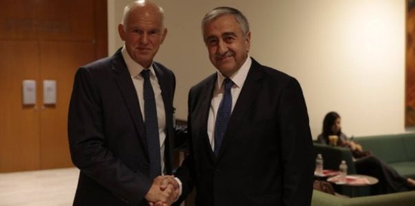 Φωτογραφία της παράνομης «προεδρίας» του ψευδοκράτους Ο κ. Γεώργιος Παπανδρέου ως πρόεδρος της ανύπαρκτης Σοσιαλιστικής Διεθνούς υποδέχθηκε τον κατοχικό ηγέτη Μουσταφά Ακιντζί.
