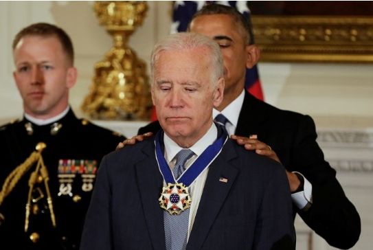 Συγκινημένος κι έκπληκτος ο Αμερικανός αντιπρόεδρος Τζο Μπάιντεν τιμήθηκε με το Προεδρικό Μετάλλιο της Ελευθερίας, την υψηλότερη τιμή που μπορεί να λάβει Αμερικανός πολίτης, από τον Μπαράκ Ομπάμα.