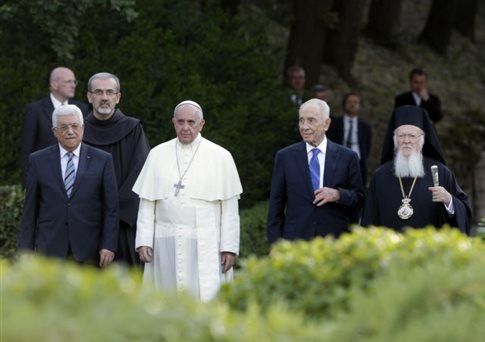 Τον Ισραηλινό πρόεδρο Σιμόν Πέρες και τον Παλαιστίνιο ηγέτη Μαχμούντ Αμπάς έφερε κοντά ο Πάπας Φραγκίσκος στην Αγία Έδρα την Κυριακή για μία προσευχή υπέρ της ειρήνης στην πολύπαθη Μέση Ανατολή.