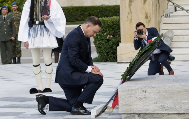 Νωρίτερα ο κ. Ντούντα κατά την κατάθεση στεφάνου στο Μνημείο του Αγνώστου Στρατιώτη γονάτισε από σεβασμό.