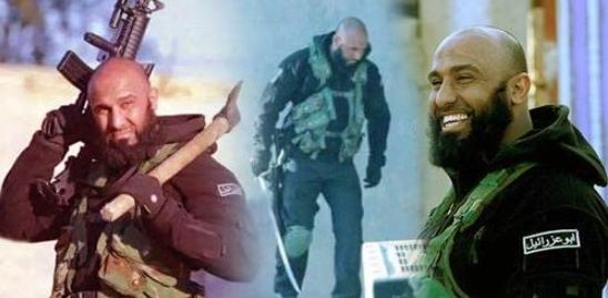 Ο φαλακρός γίγαντας μαχητής χρησιμοποιεί ένα αμερικανικό πολυβόλο Μ60 σε όρυγμα από το οποίο οι Ιρανικοί πολιορκούν τον ισλαμικό στρατό. Επίσης ο Abu Azrael φαίνεται να χρησιμοποιεί και το διάσημο τσεκούρι του, με το οποίο συχνά φωτογραφείται στο πεδίο της μάχης.