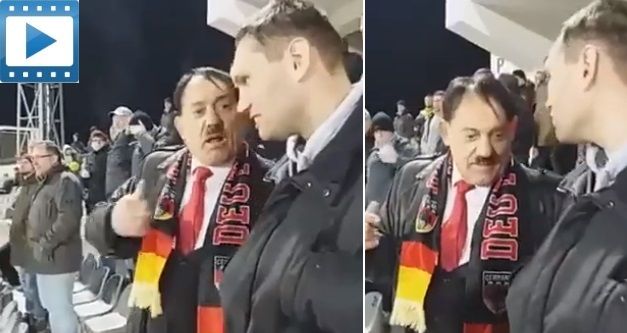 Φυσικά δεν πρόκειται για τον ίδιο τον ηγέτη της ναζιστικής Γερμανίας. Ωστόσο «πάγωσε» το αίμα όσων τον αντίκρυσαν, καθώς η ομοιότητα του συγκεκριμένου φιλάθλου με τον Χίτλερ είναι εξωπραγματική.