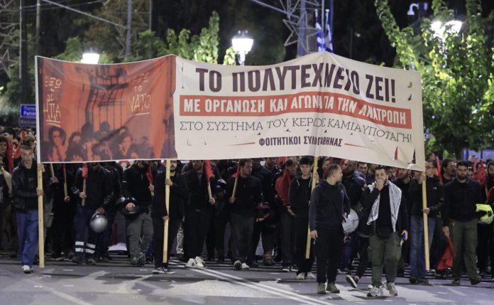 Με τον Σύλλογο Φυλακισθεντων κι Εξορισθεντων Αντιστασιακών, τους συλλόγους φοιτητών του ΕΜΠ και του ΕΚΠΑ στην πρωτοπορία ξεκίνησε η κυρία πορεία των οργανώσεων της νεολαίας, των κομμάτων και συλλογικοτήτων για την επέτειο της εξέγερσης της 17ης Νοέμβρη 1974 στο Πολυτεχνειο.