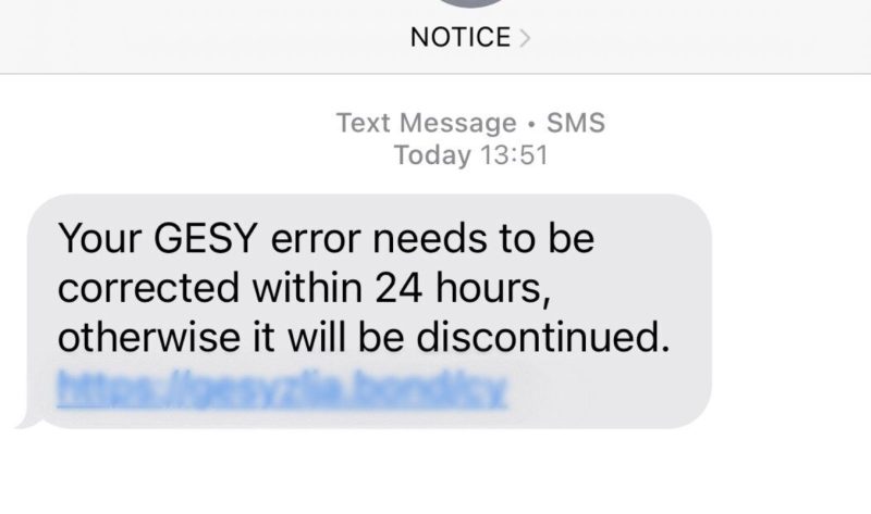Συγκεκριμένα τα ύποπτα μηνύματα (SMS) αναφέρουν ψευδώς ότι υπάρχει πρόβλημα με την σύνδεση στην ηλεκτρονική πύλη του ΓΕΣΥ και προτρέπουν τους ανυποψίαστους πολίτες όπως προχωρήσουν σε επιδιόρθωση του σφάλματος, ενεργοποιώντας τον κακόβουλο ηλεκτρονικό σύνδεσμο που περιέχει το μήνυμα, ο οποίος στην πραγματικότητα οδηγεί σε ιστοσελίδα υποκλοπής κωδικών πρόσβασης. (phishing).
