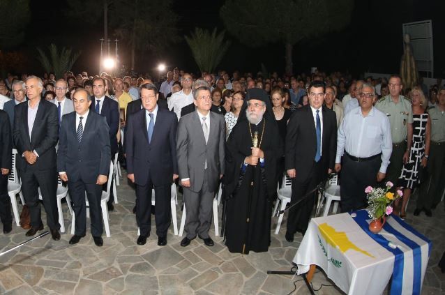 Ο Πρόεδρος χαιρέτησε για ακόμα μια χρονιά την παρουσία των «εξ Ελλάδος αδελφών, οι οποίοι με την ίδια καρτερικότητα, όπως και οι συμπατριώτες και οι συμπατριώτες Έλληνες Κύπριοι, για 42 τόσα χρόνια προσμένουν, αγωνιούν, υποφέρουν, καρτερούν να ακούσουν ένα καλό μαντάτο κάτω από ποιες συνθήκες έχασαν τους προσφιλείς και δικούς τους και δικούς μας».