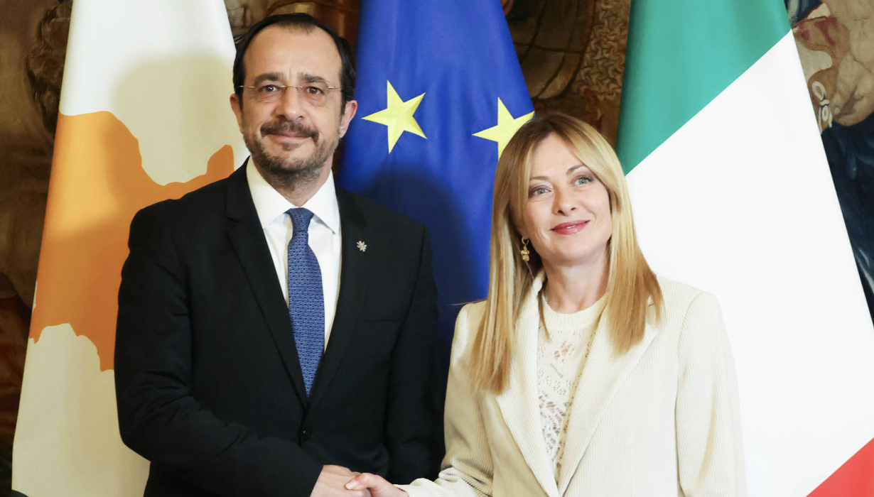 Στην ισχυρή κοινή επιθυμία των Κυβερνήσεων Κύπρου και Ιταλίας για την περαιτέρω ενίσχυση των διμερών σχέσεων ανάμεσα τους, εξέφρασαν σήμερα ο Πρόεδρος της Δημοκρατίας κ. Νίκος Χριστοδουλίδης και η Πρωθυπουργός της Ιταλίας κα Τζόρτζια Μελόνι, κατά τη συνάντηση τους στη Ρώμη, στο πλαίσιο της επίσημης επίσκεψης που πραγματοποιηθεί ο Πρόεδρος Χριστοδουλιδης στην Ιταλία.