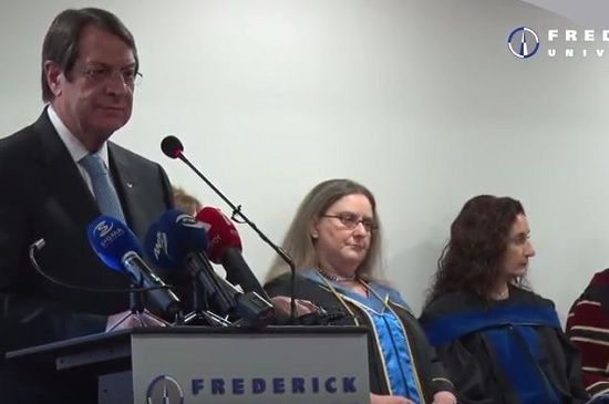 Ο Προέδρος της Δημοκρατίας κ. Νίκος Αναστασιάδης σε χαιρετισμό του στην αναγόρευση του Γεώργιου Μπαμπινιώτη σε επίτιμο διδάκτορα του Πανεπιστημίου Frederick εξήρε την προσφορά του στην εκπαίδευση και στον πολιτισμό.