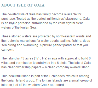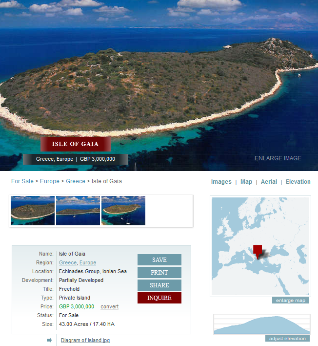 Ακόμη και ιστορικά νησιά βγαίνουν στο σφυρί και τα ΜΜΕ δεν αναφέρουν απολύτως τίποτα. Δείτε την αγγελία από την πώληση των Εχινάδων νήσων στο Ιόνιο προς 3,000,000 λίρες Αγγλίας. Στις Εχινάδες Νήσους έγινε στην πραγματικότητα η περίφημη Ναυμαχία της Ναυπάκτου το 1571. Κατά την Ελληνική μυθολογία ήταν νύμφες που τιμωρήθηκαν από τον Αχελώο.