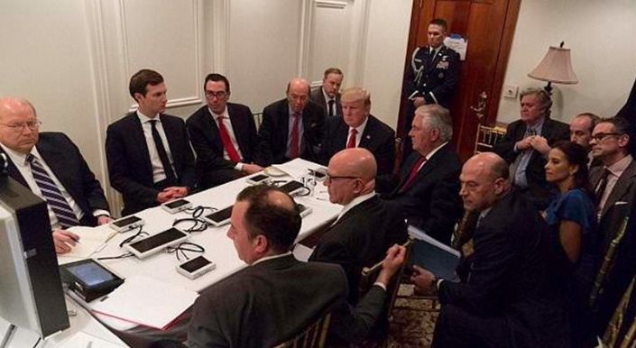 Ο Τραμπ βρισκόταν στην έπαυλή του στη Φλόριντα για την πρώτη σύνοδο κορυφής με τον Κινέζο πρόεδρο Σι Τζινπίνγκ. Η σύνοδος αυτή όμως έπρεπε να περιμένει την απόρρητη ενημέρωση του Αμερικανού προέδρου από τον υπουργό Άμυνας Τζιμ Μάτις και τον σύμβουλο σε θέματα Εθνικής Ασφάλειας Χ.Ρ. Μακμάστερ.