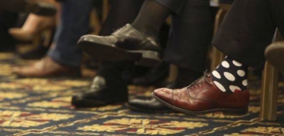 Το θέμα, ωστόσο, είναι πως σε εκείνη την ομιλία κάποιος άλλος κέρδισε τις εντυπώσεις και «μαγνήτισε» τα φλας των φωτογράφων. Για την ακρίβεια όχι ο ίδιος αλλά οι… κάλτσες του!