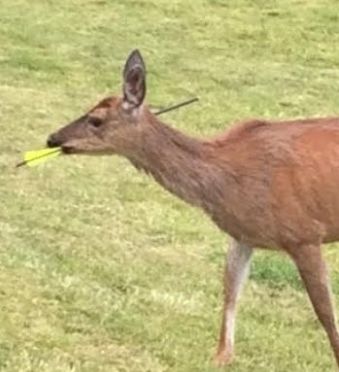 Το ελάφι, έμοιαζε να είχε συνηθίσει το βέλος στο κεφάλι του και δεν έδειχνε να το δυσκόλευε στην ανεύρεση τροφής, όπως σημειώνουν κτηνίατροι που είδαν τις επίμαχες φωτογραφίες. Ο στόχος των υπευθύνων είναι τώρα να αιχμαλωτίσουν το ελάφι για να μπορέσουν να του αφαιρέσουν χειρουργικά το βέλος και να συνεχίζει τη ζωή του όπως πριν.