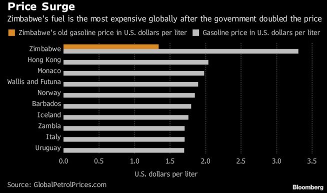 Δέκα χρόνια μετά τον υπερπληθωρισμό περίπου 500 δισεκατομμυρίων τοις εκατό, η Ζιμπάμπουε έχει πλέον… επιτύχει ένα άλλο αξιοζήλευτο ρεκόρ: να πωλεί το πιο ακριβό καύσιμο παγκοσμίως.