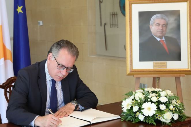 Νωρίτερα, ο κ. Κουμουτσάκος υπέγραψε το Βιβλίο Συλλυπητηρίων για τον τέως Πρόεδρο της Δημοκρατίας.