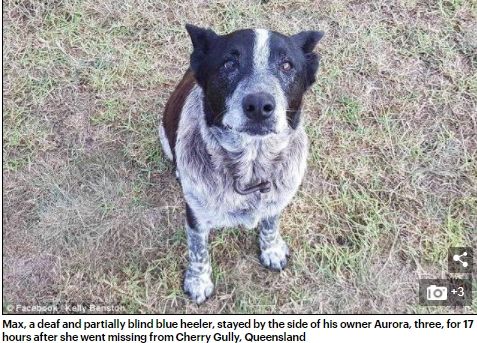 Ο Μαξ, ένας 17χρονος σκύλος ράτσας Blue Heeler, έμεινε δίπλα στη μικρή Αουρόρα κατά τη διάρκεια μιας βροχερής νύκτας, πριν οδηγήσει την οικογένεια και τους διασώστες στο παιδί, το οποίο αναζητούσαν οι αρχές σε μια αγροτική περιοχή του Κουίνσλαντ από την Παρασκευή, όταν και εξαφανίστηκε.
