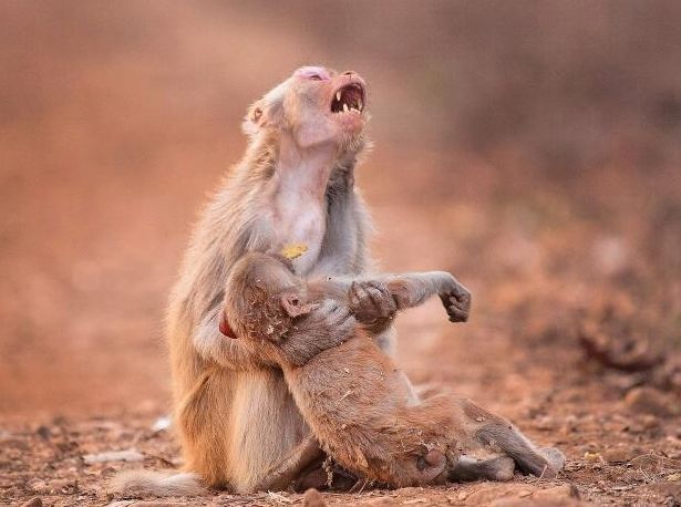 Τι είχε συμβεί; Το μικρό έπεσε κάτω και φαίνεται ότι έχασε για λίγο τις αισθήσεις του. Η μητέρα του νομίζοντας ότι το παιδί της έφυγε από την ζωή θρηνεί. Τελικά, όμως «τέλος καλό, όλα καλά», αφού το μαϊμουδάκι συνήλθε, προς ανακούφιση της μητέρας του αλλά και του φωτογράφου.