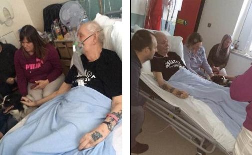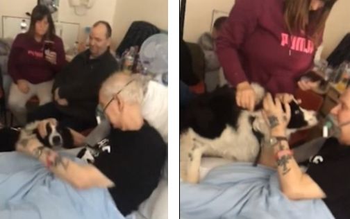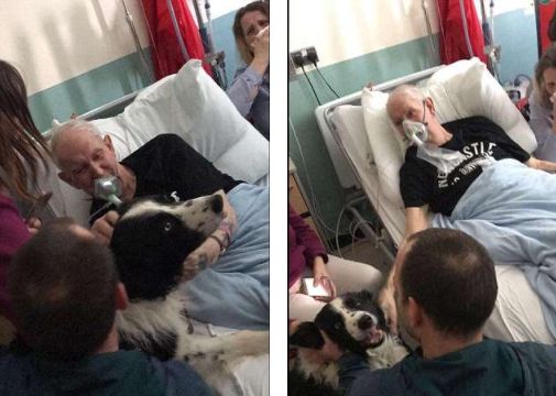 Αυτή είναι η συγκινητική στιγμή που ένας ετοιμοθάνατος άντρας βλέπει για τελευταία φορά τον αγαπημένο του σκύλο στο κρεβάτι του νοσοκομείου λίγες ώρες πριν πεθάνει.